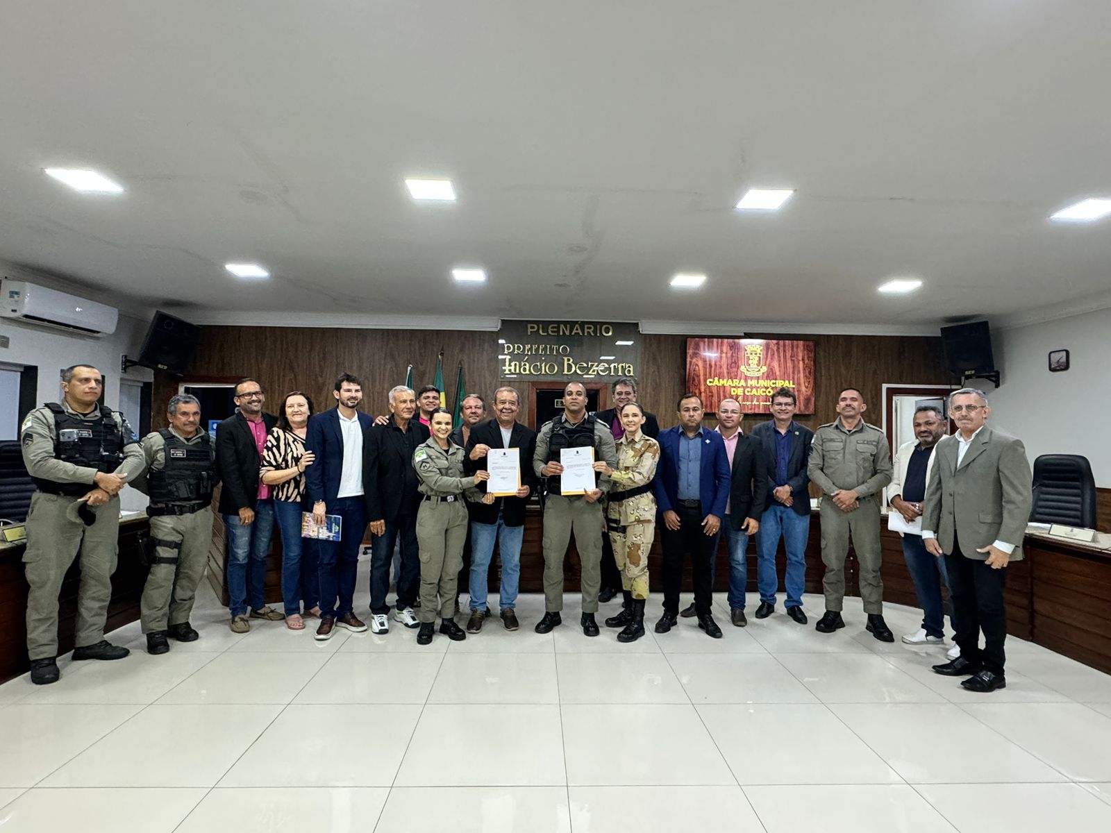 A Câmara de Vereadores de Caicó entregou na noite desta segunda-feira (11), uma moção de Aplausos para o Comando do 6° Batalhão da Polícia Militar. A homenagem foi proferida pelo vereador Lobão Filho e aprovada com unanimidade pelos demais vereadores que fizeram a entrega ao comandante Major Flávio Waldez.