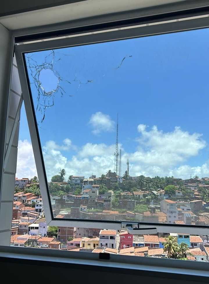 Nos dois casos, os tiros atingiram a janela da área de serviço, que têm lado para o bairro de Mãe Luíza.
