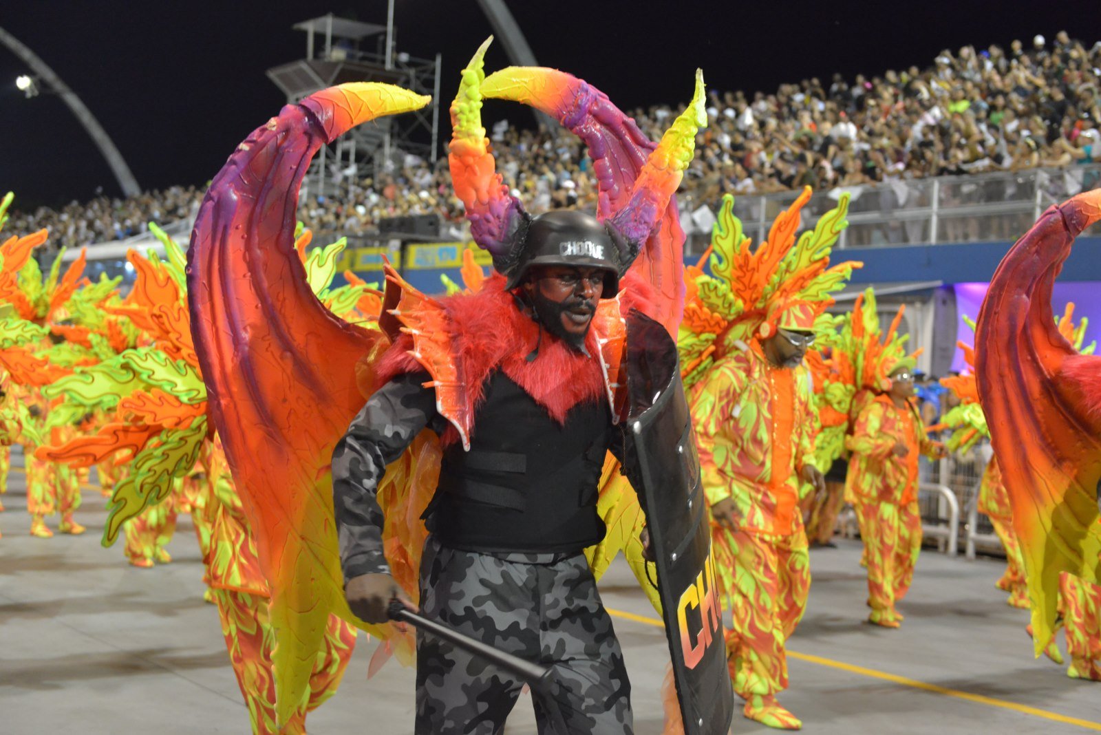 A escola desfilou no sábado, 10, e levou ao Anhembi um enredo em homenagem ao hip-hop. Uma das alas era composta por pessoas fantasiadas de policiais do Batalhão de Choque. Elas usavam chifres e asas vermelho-alaranjadas, fazendo alusão a demônios. As alegorias provocaram protestos da Frente Parlamentar de Segurança Pública da Câmara, a chamada bancada da bala, e de entidade de delegados.