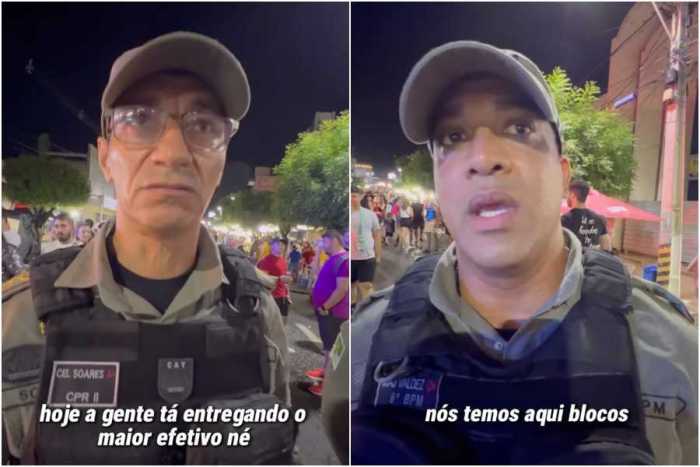 Major Valdez respondeu a seguinte pergunta: Como a PM está se virando para cobrir dois turnos na folia em Caicó? “A gente fez um planejamento diferenciado, e a gente iniciou esse planejamento há um mês e meio atrás, junto com a prefeitura de Caicó e as outras instituições que são envolvidas. A gente precisou empregar mais efetivo e lançar esse efetivo a partir das 10 horas da manhã até às 03 da manhã. Nós estamos conseguindo empregá-los em lugares estratégicos e até agora, os testes que a gente fez em relação ao planejamento, estão eficientes”, concluiu Valdez.