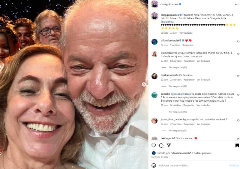 Procurada pela coluna, a EBC disse que a contratação ocorreu em conformidade com o previsto na Lei das Estatais e no Regulamento Interno de Licitações e Contratos. Na eleição de 2022, Cissa Guimarães foi uma das artistas a gravar um jingle para a campanha do então candidato Lula à Presidência.