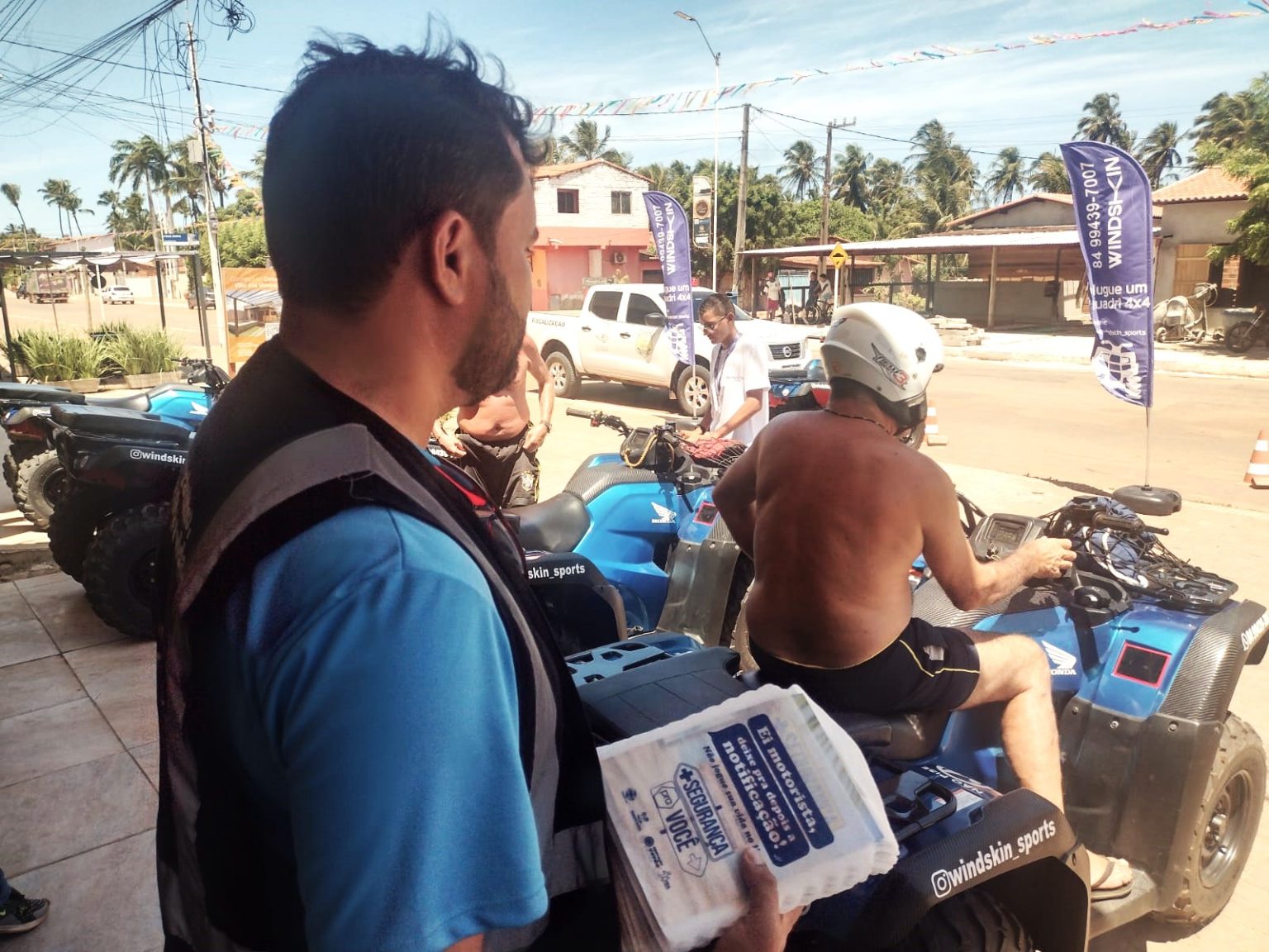 O Departamento Estadual de Trânsito do RN (Detran) realizou nesse final de semana dois dias de ações educativas na cidade de São Miguel do Gostoso, litoral Norte do Estado. As atividades reforçam a segurança do tráfego durante a Operação Verão 2024 e focaram nas orientações destinadas aos condutores de veículos e nos setores empresariais que atuam na locação de quadriciclos e UTVs destinados a turistas que visitam a região de praias.