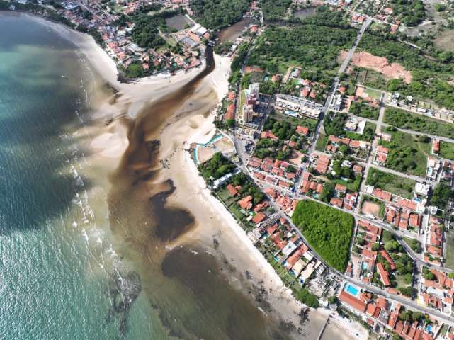 Uma imagem impressionante divulgada pelo Blog do Gustavo Negreiros mostra a água suja do rio Pium chegando a praia de Pirangi. A água preta contamina diretamente a praia.