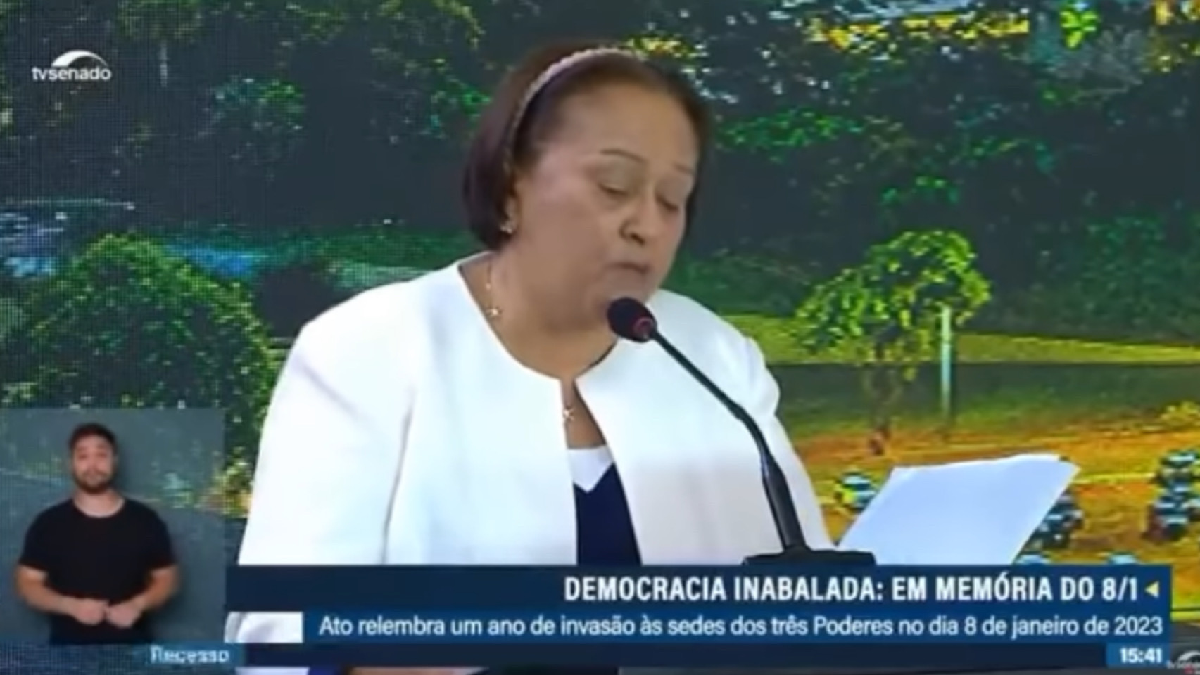Fátima Bezerra, a governadora do Rio Grande do Norte, falou no ato de um ano da invasão do 8 de Janeiro, no Congresso Nacional. Falando em nome dos governadores de estado, a petista disse que a punição não é um ato apenas de um espectro político.