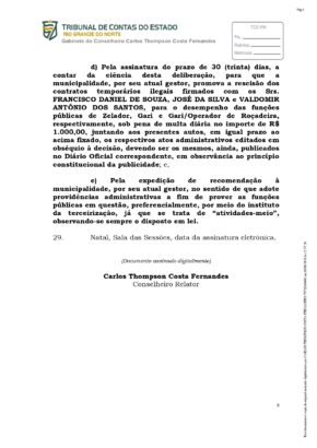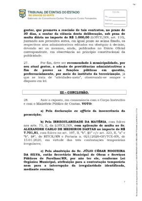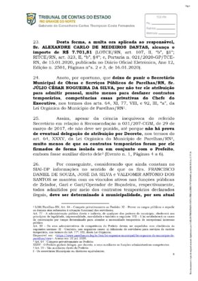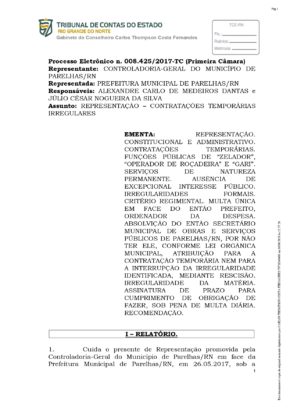 O prefeito de Parelhas/RN, Alexandre Petronilo, foi condenado no 8425/2017 TCE-RN dia 06 de agosto de 2020 a pagar uma multa de R$ 7.701,81 por contratação irregular de servidores. A denuncia foi protocolada pelo Controlador Geral do Município na época, o senhor Flaber Ricardo, que após ter notificado por duas vezes o prefeito, o mesmo preferiu manter a irregularidade, deixando o ex-controlador sem saída. Ou denunciava, ou era cúmplice!