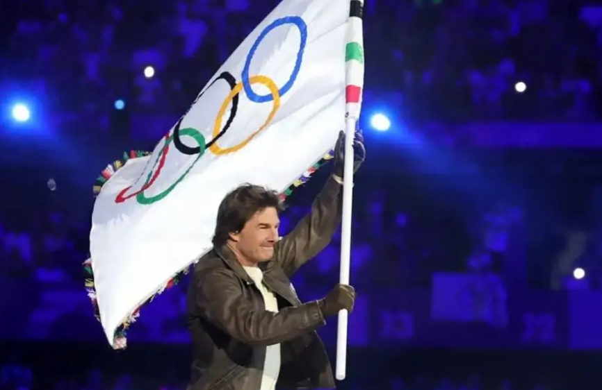 O trecho norte-americano da cerimônia contou com uma entrada triunfal do ator Tom Cruise, que desceu uma tirolesa ao estilo do personagem Ethan Hunt, interpretado por ele em ‘Missão Impossível’. Nesta parte, a cidade exibiu suas credenciais em um vídeo gravado, que começou com Cruise carregando a bandeira olímpica até Los Angeles de moto e terminou com apresentações da banda Red Hot Chili Peppers, da cantora Billie Eilish e do rapper Snoop Dogg, acompanhado pelo também rapper Dr.Dre.