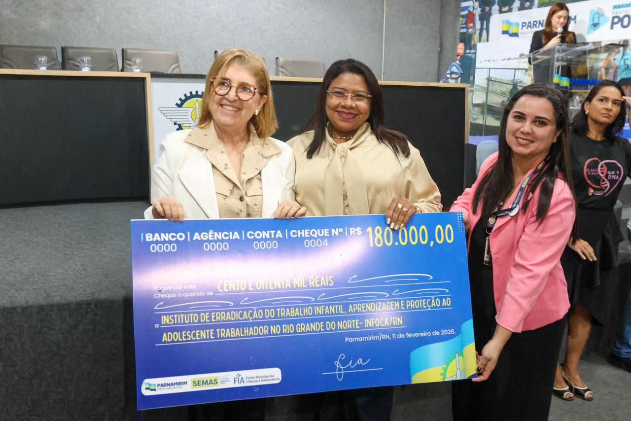 “Hoje Parnamirim tem uma gestão que trabalha com transparência, e isso impacta diretamente na promoção de políticas públicas efetivas que transformam e salvam vidas.” A declaração da prefeita Nilda marcou a solenidade de assinatura do Termo de Fomento com organizações da sociedade civil contempladas com recursos do Fundo Municipal da Infância e Adolescência (FIA). Foram destravados R$ 3 milhões para fortalecer as políticas públicas voltadas à proteção de crianças e adolescentes em Parnamirim, consolidando um novo momento de responsabilidade, transparência e compromisso social no município.