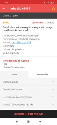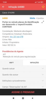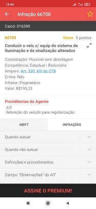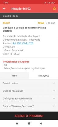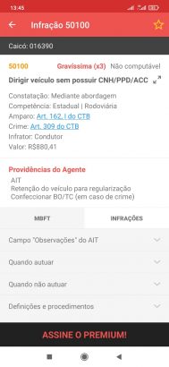 Veja quais foram os cinco artigos usados, todos do CTB.