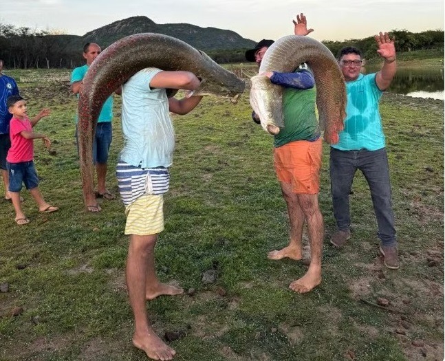 Outros dois peixes da espécie já tinham sido retirados do açude em outra ocasião. Ainda segundo o fazendeiro, quando os animais foram colocados no reservatório, tinham apenas 10 centímetros.