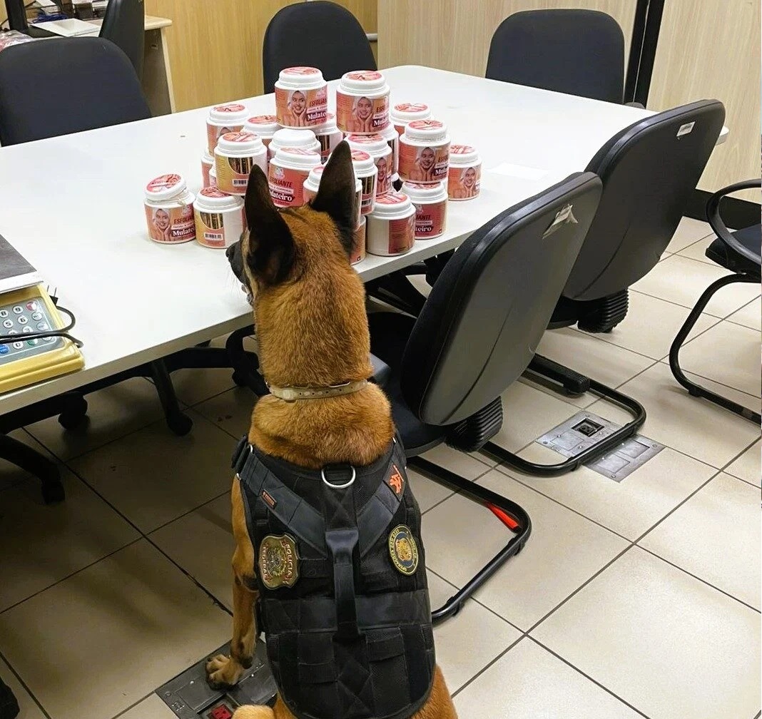Os policiais utilizaram os cães Ice e Kiara, do Canil da PF, treinados para detectar entorpecentes. Os animais ajudaram a localizar 6,2 kg de skank, uma substância derivada da maconha, caracterizada por aroma forte e maior concentração de substâncias psicoativas.