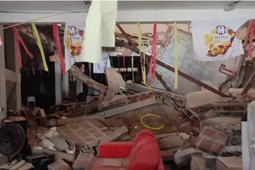 O estabelecimento comercial funcionava no térreo do prédio comercial. O primeiro andar estava em manutenção no momento do desabamento e apenas trabalhadores estavam no local quando o incidente ocorreu. Das oito pessoas, duas ficaram feridas com escoriações.