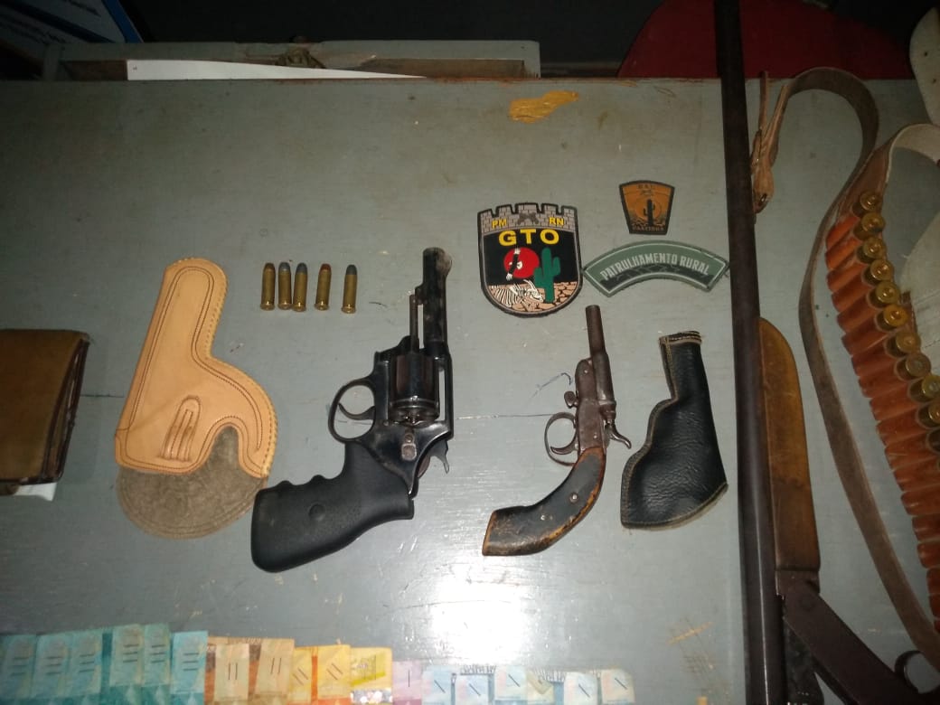 Uma ação da Polícia Militar terminou com apreensão de três armas de fogo, dinheiro e munições e prisão de um suspeito na noite desse domingo em Jardim do Seridó.