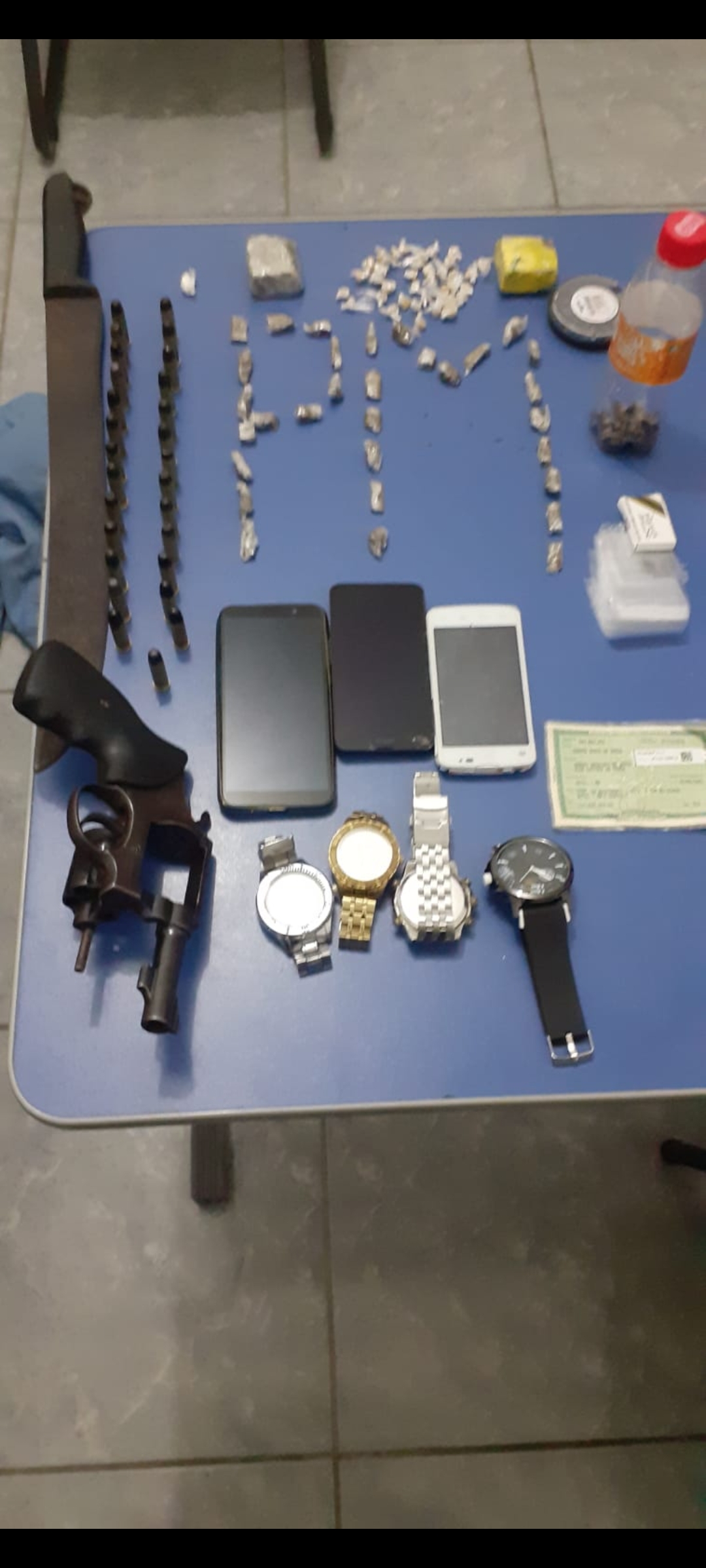 Com o casal a Polícia Militar apreendeu arma de fogo, facão e droga. Conduzido à delegacia da cidade, o casal foi entregue à autoridade competente.