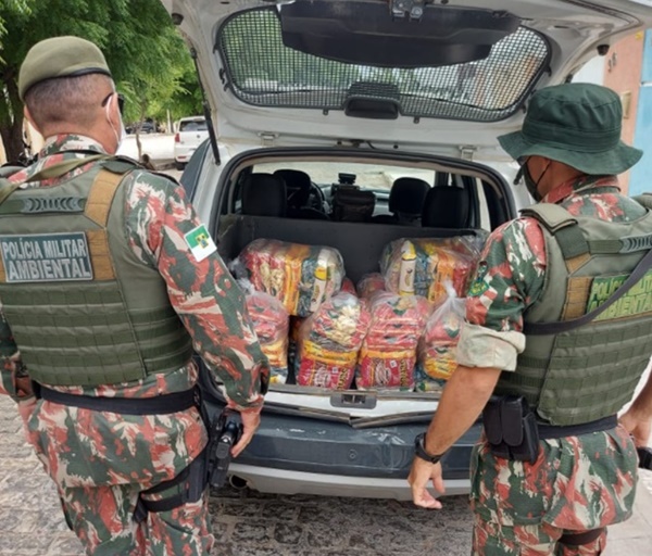 Uma patrulha da CIPAM (Companhia Independente de Policiamento Ambiental) entregou cestas básicas a famílias carentes residentes em bairros afastados do centro, como Frei Damião, João Paulo II e outros.