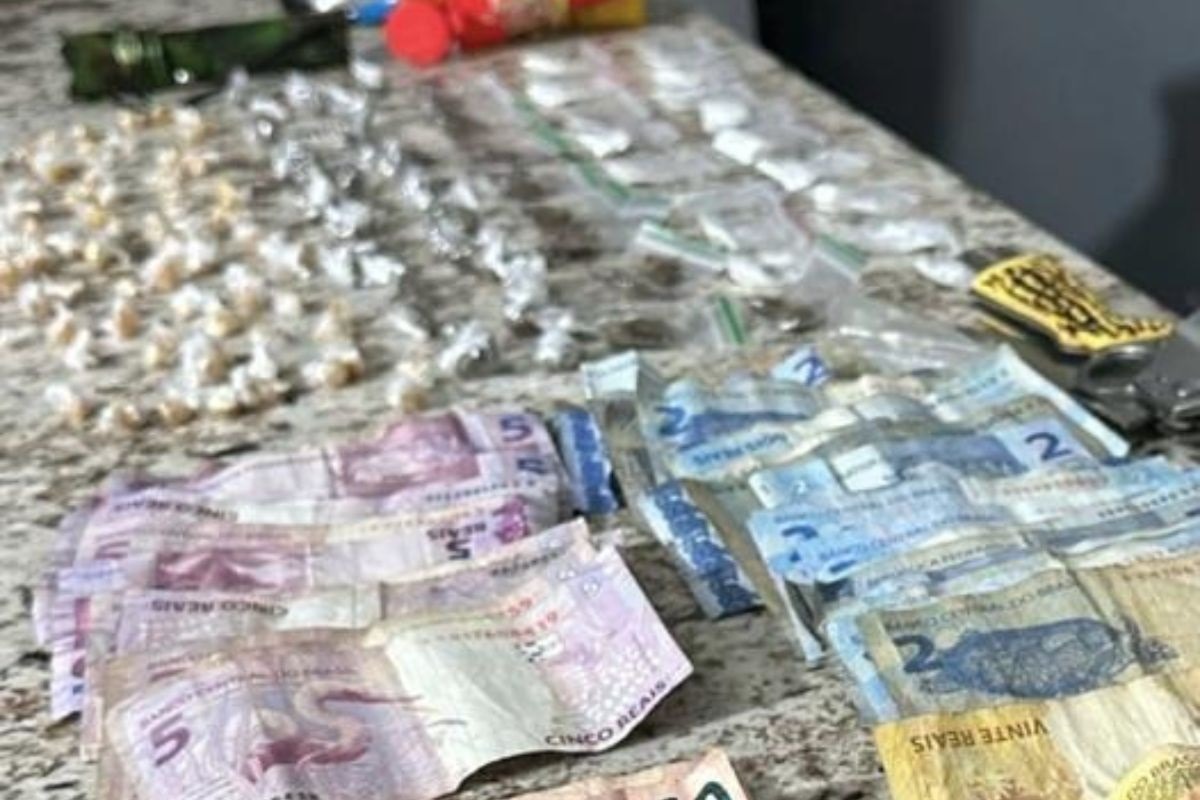 O valor em espécie, por estar fracionado, é comumente associado à comercialização de entorpecentes, segundo a polícia.