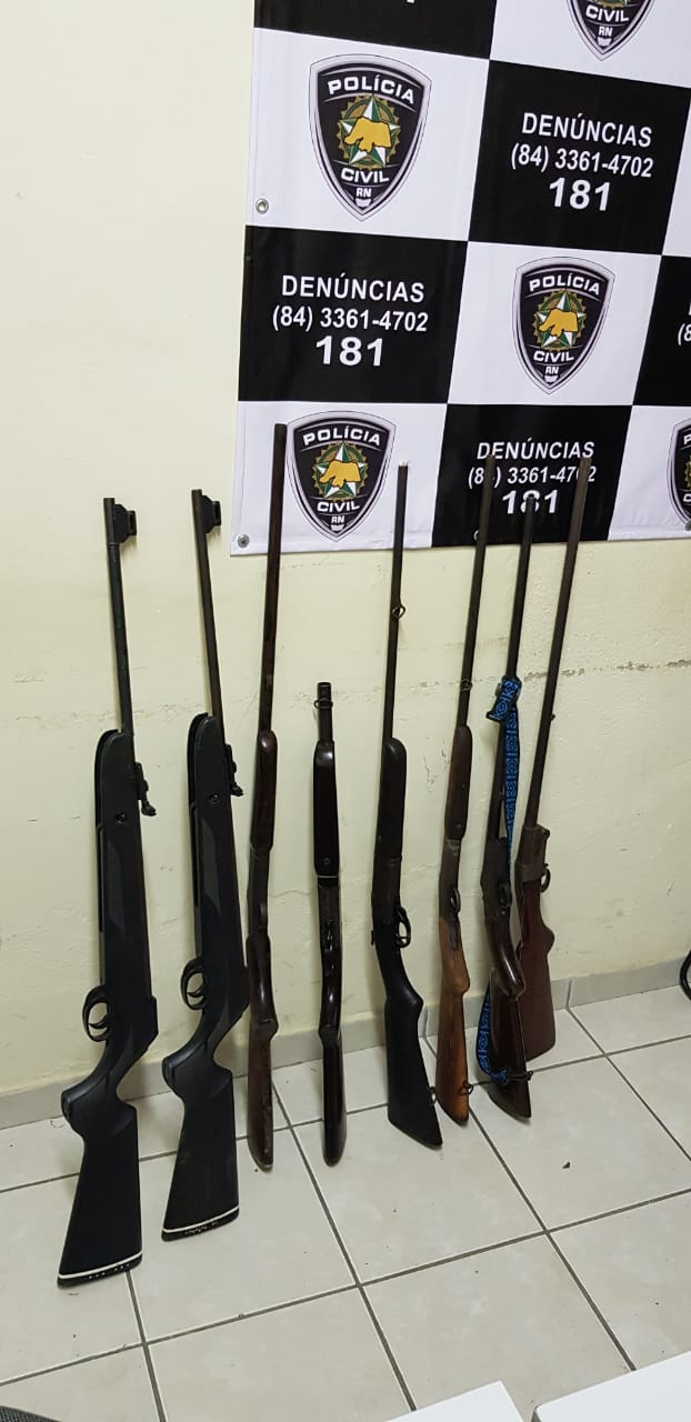 Em um dos alvos, na zona rural do município, foram apreendidas armas de fogo e munição, oportunidade em que se deixou de empreender a prisão do suspeito em virtude deste ter empreendido fuga no mato. Os flagranteados foram autuados e transferidos para a Cadeia Pública de Caraúbas.