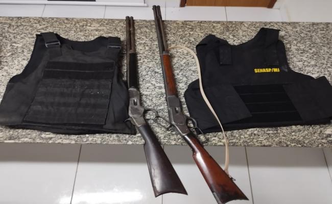 No local foi apreendido um vasto material explosivo utilizado para estouro de caixas eletrônicos em agências bancárias. Além disso, também foram apreendidos um veículo com registro de roubo, dois rifles calibre 44 (com várias munições), dois coletes balísticos, munições de espingarda calibre 12 e oito baldes de grampos que seriam espalhados nas vias para dificultar a chegada das viaturas policiais nos locais de crime.