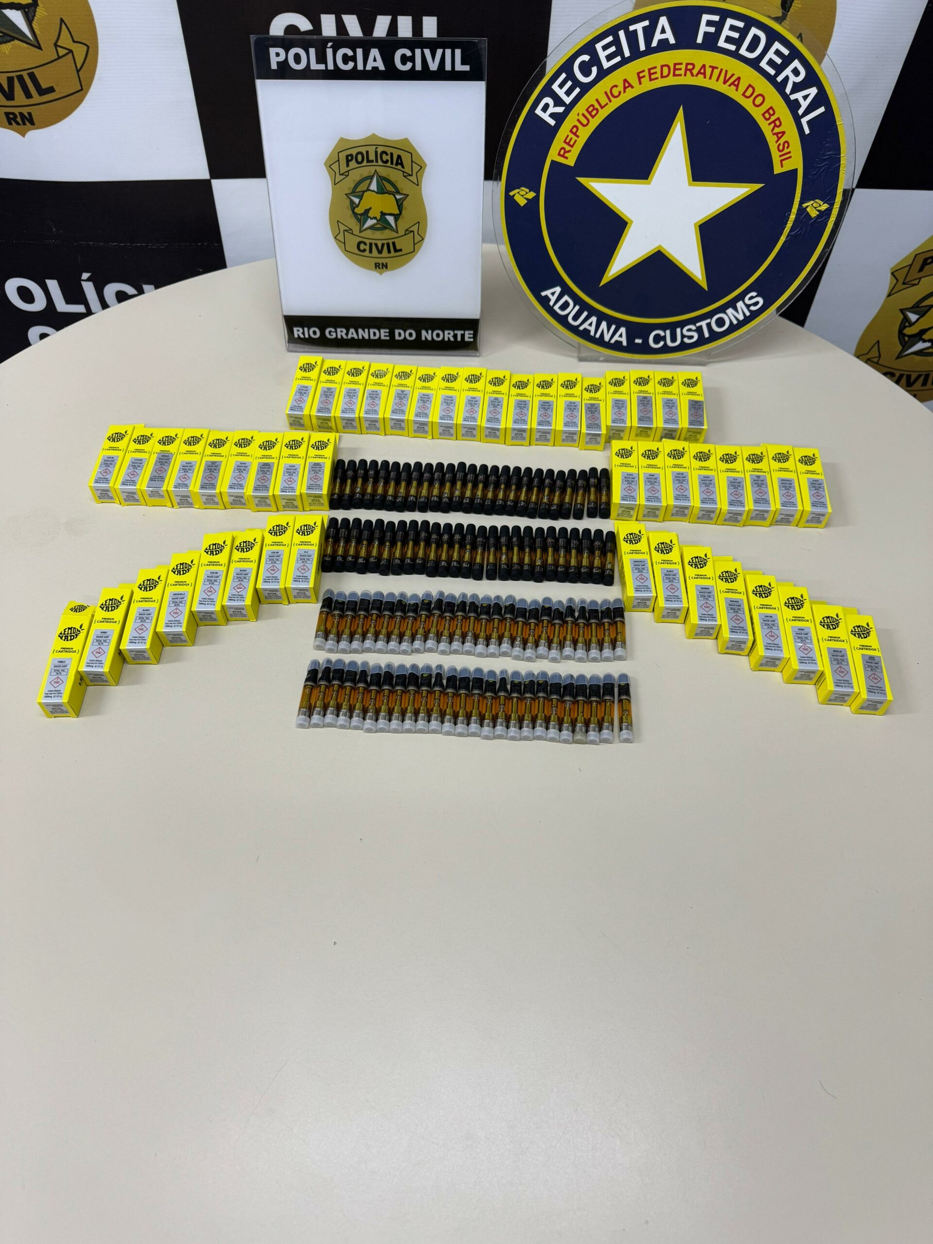 A Polícia Civil do Rio Grande do Norte e a Receita Federal realizaram, nesta terça-feira (16), a primeira apreensão, no estado, de refis para cigarros eletrônicos contendo alta concentração de THC (Tetrahidrocanabinol), principal substância psicoativa da maconha.