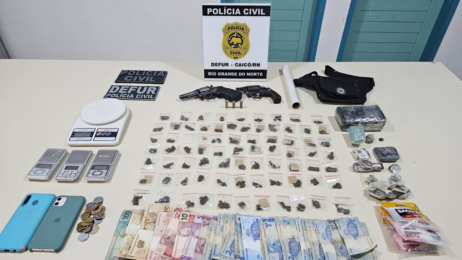 Polícia Civil prende dois homens envolvidos em roubos e tráfico de drogas: adolescente é apreendido em Caicó