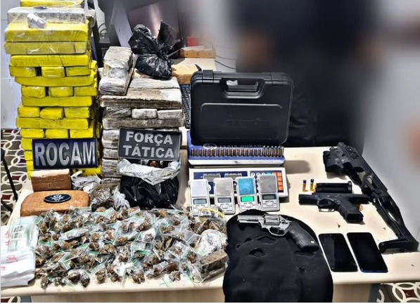 Na noite desta quinta-feira (5), por volta das 19h, equipes da *ROCAM* e da *Força Tática do 4º BPM*, que integram a *Operação Protetor*, realizaram uma expressiva apreensão de drogas, armas e materiais relacionados ao tráfico na praia de Pipa, no litoral potiguar.