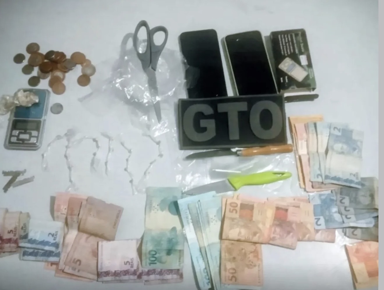 Durante a abordagem, os policiais encontraram com o acusado 22 pequenas porções e uma porção maior de crack, totalizando 10,41 gramas, além de uma balança de precisão, R$ 1.339,00 em cédulas, R$ 15,75 em moedas, dois aparelhos celulares, duas facas, uma tesoura e material para embalagem.