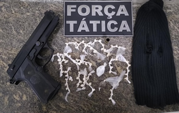 Os PMs interceptaram o ônibus na altura do trevo que dá acesso ao município de Pureza. Na busca pessoal, foi encontrado um simulacro de pistola, uma balaclava, 01 saquinho de cocaína, 02 porções pequenas de maconha e 80 pedras de crack.