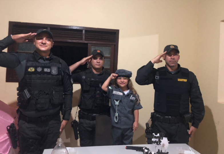 Segundo os pais da menina, ela nunca escondeu sua admiração pelos PMs quando os vê pelas ruas da cidade. A paixão da aniversariante é tão grande que este ano ela usou roupas semelhantes ao uniforme da Instituição para celebrar a data junto com os policiais.