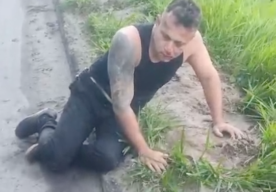 Há vídeos que mostram o carro com marcas de tiro e também o agente no acostamento com sinais de embriaguez. Há ainda um outro vídeo que mostra ele deitado no meio do mato quando os policiais militares chegam para prendê-lo.