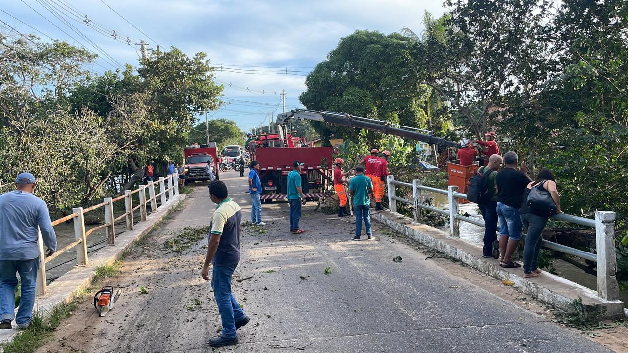 Agora, a ponte está temporariamente interditada para serviços de desobstrução e retirada de árvore.