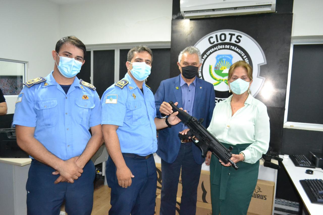 A Guarda Municipal de Mossoró recebeu na tarde desta quinta-feira (19), 15 pistolas de eletrochoque, 5 carabinas, 60 coletes, além de 20 rádios e duas caminhonetes L200 (que servirão para o patrulha Maria da Penha). Para utilizar as armas de fogo, os guardas irão passar por um curso de capacitação, após o convênio com a Polícia Federal. A previsão é de que até março de 2021, 60 guardas estejam aptos a utilizarem as armas de fogo.