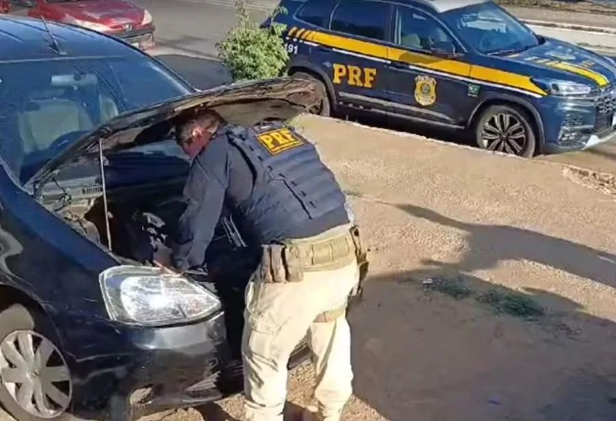 “Ao consultarem os dados do automóvel, [os policiais] encontraram informações contraditórias que despertaram suspeitas”, informou a PRF. O veículo tinha queixa de apropriação indébita.