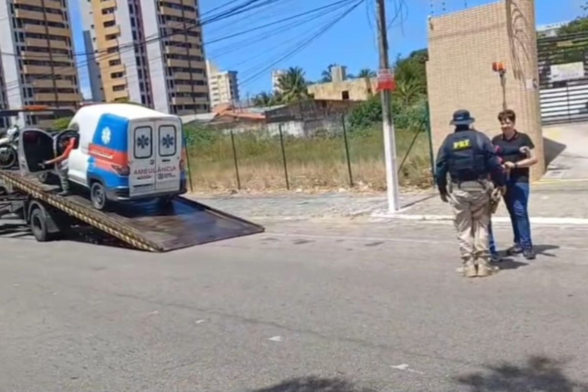 De acordo com a PRF, o veículo trafegava com dois pneus carecas e com o giroflex/sirene inoperantes. Diante da constatação das irregularidades e por estar transportando um paciente, os agentes deslocaram a ambulância até um hospital da capital para que o paciente fosse atendido e, após isso, o veículo foi recolhido.