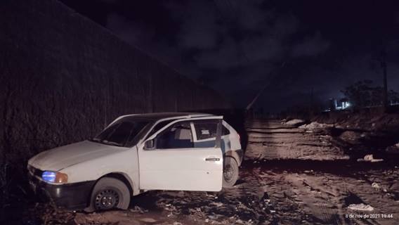 Durante patrulhamento tático pela rodovia BR 101, a equipe PRF avistou um veículo Gol de cor branca, que possuía queixa de roubo datada de 24/10/2021 e iniciou acompanhamento tático. Ao perceber a presença da PRF, o condutor do Gol saiu da rodovia na altura do km 79 e empreendeu fuga por estradas de barro. Após alguns minutos, o motorista perdeu o controle do automóvel e colidiu em um poste de energia, fugindo a pé para uma região de mata. Os policiais realizaram buscas, mas não encontraram o homem.