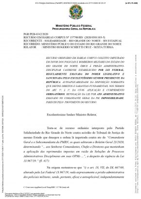 Procuradoria da República concorda e Habeas Corpus solicitado pelo Solidariedade a favor dos policiais militares do RN vai tramitar no STJ