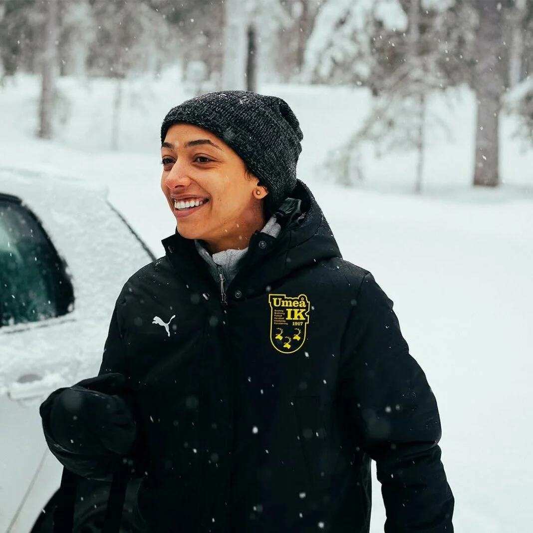 “Ela já está em campo! Veja a primeira imagem da atriz Alice Carvalho como Marta, a grande rainha do futebol brasileira”, escreveu a produtora na publicação.