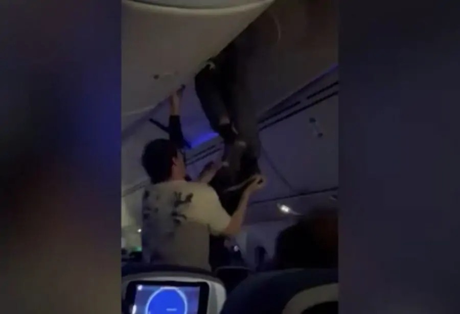 A aeronave, que precisou desviar e pousar de forma emergencial em Natal, no Rio Grande do Norte, sofreu tantos solavancos que o idoso foi lançado para dentro do bagageiro da cabine do avião. O momento em que ele foi retirado do compartimento foi registrado em vídeo por um dos passageiros.