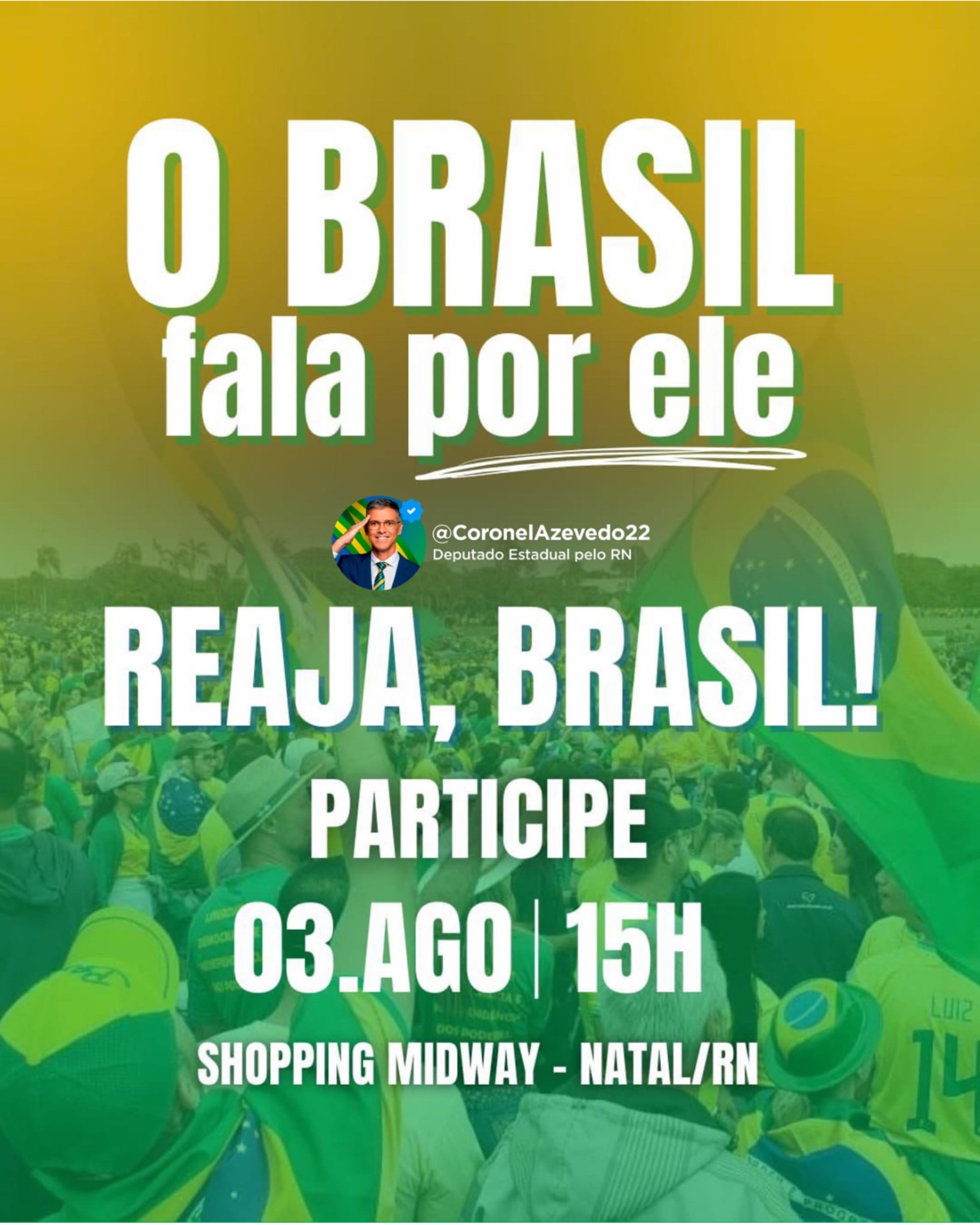 Reaja Brasil: Direita do RN programa ato pró Bolsonaro, em defesa da liberdade, para o dia 03 de agosto, no Midway