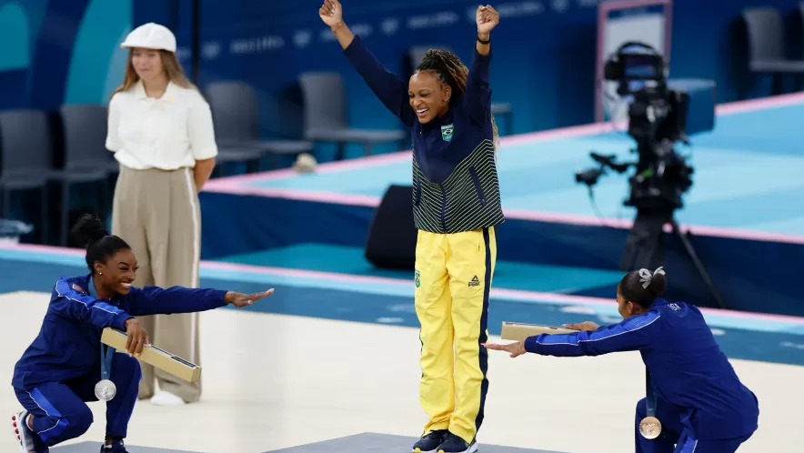 Só em Paris foram uma de ouro (a de hoje), duas de prata (individual geral e salto, perdendo ambas para Biles) e a de bronze por equipes, a primeira na história do país, que fez o Brasil poder dizer que agora tem uma “escola de ginástica”.