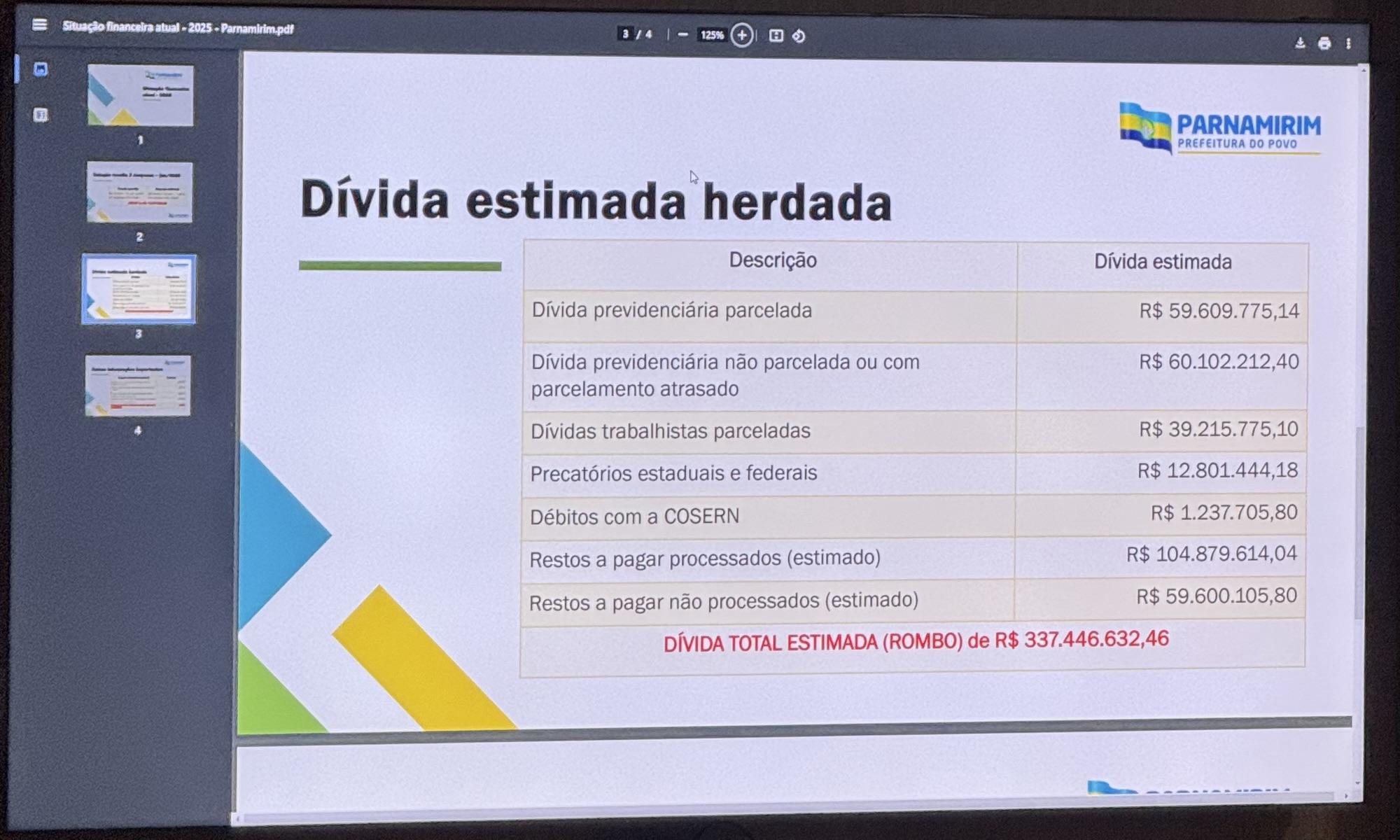 Relatório parcial aponta rombo de R$ 337.446.632,46 milhões na prefeitura de Parnamirim. Veja!