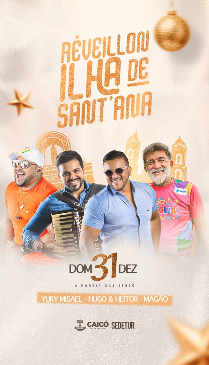 A prefeitura de Caicó, por meio da secretaria de cultura do município, nas pessoas de Dr. George Victor e Mara Costa, confirmou as atrações para o réveillon no completo Ilha de Sant’ana 2023/2024.