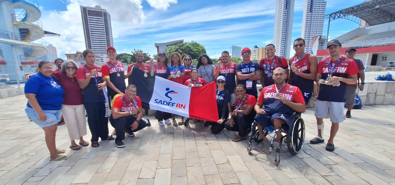 A natação paralímpica do Rio Grande do Norte deu um show de força e superação no último fim de semana, durante o Meeting Paralímpico de Natação, realizado em João Pessoa (PB). Representada por 16 paratletas da Sociedade Amigos do Deficiente Físico do RN (Sadef), a delegação potiguar conquistou impressionantes 38 medalhas: 30 de ouro, 6 de prata e 2 de bronze.