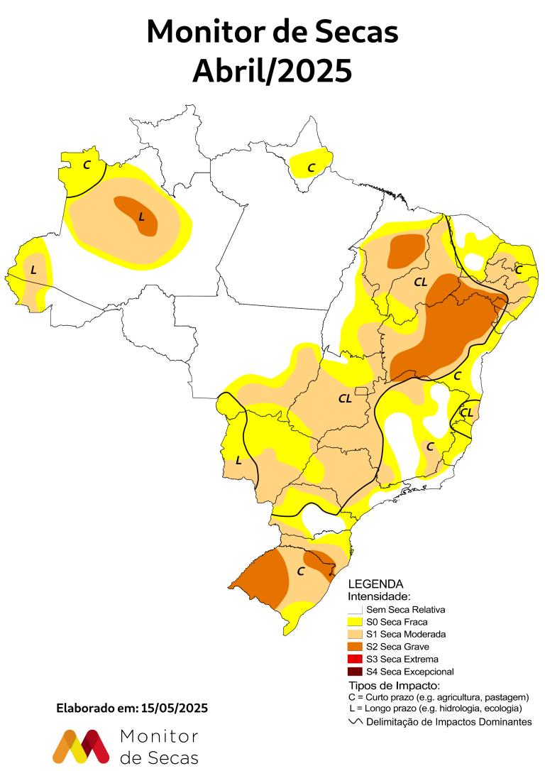 Mesmo em seu estágio fraco, a seca tem potencial para reduzir o plantio e o crescimento de culturas ou pastagens. Quando se agrava para moderada, os danos às lavouras e pastagens tornam-se mais evidentes, somando-se à diminuição dos níveis de água em córregos, reservatórios ou poços.