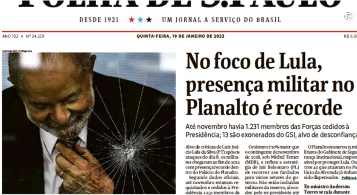 Contudo, a Secom discordou do ponto de vista apresentado e disse ser “lamentável que o jornal Folha de S.Paulo tenha produzido e veiculado uma imagem não jornalística sugerindo violência contra o presidente da República, Luiz Inácio Lula da Silva, no contexto dos atos antidemocráticos de 8 de janeiro”.