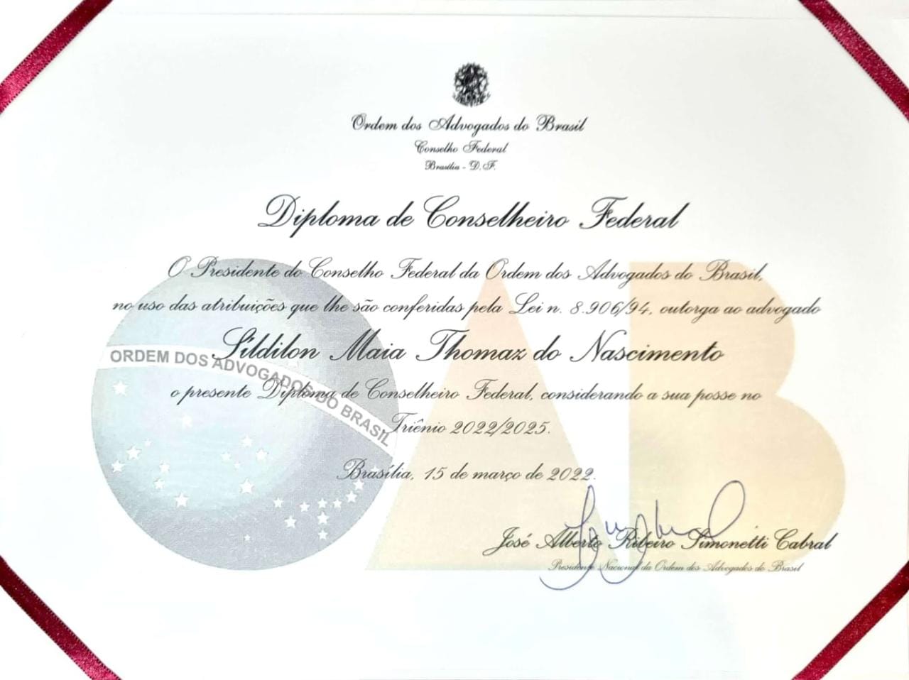 Na manhã desta terça-feira (15.03), o advogado caicoense Síldilon Maia Thomaz do Nascimento tomou posse como Conselheiro Federal da OAB. A solenidade aconteceu na sede da instituição, em Brasília (DF).
