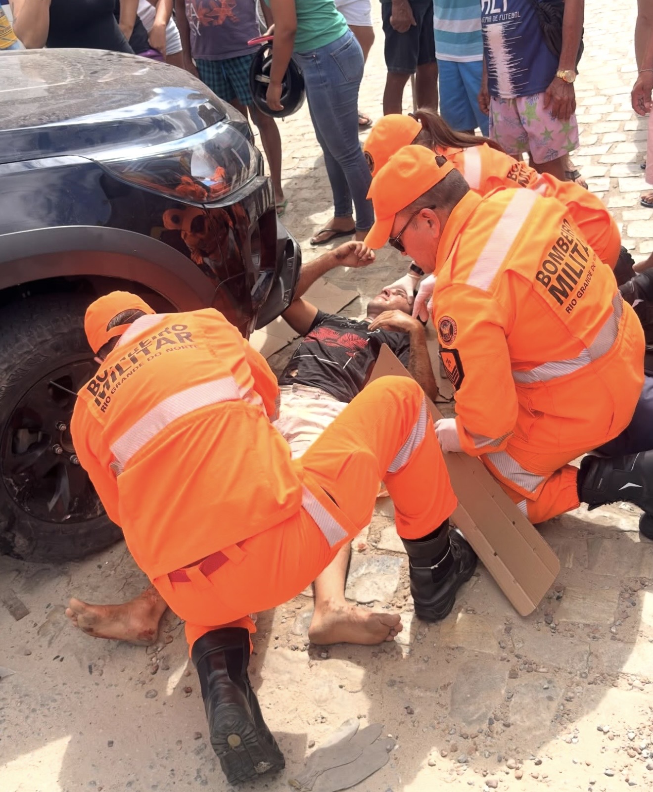 Segundo informações do Corpo de Bombeiros, o jovem sofreu fraturas graves nas pernas. O fêmur da perna esquerda apresentava deformidade visível, enquanto a perna direita tinha um hematoma significativo. Ele foi imobilizado por duas equipes dos bombeiros e socorrido para o Hospital Regional de Caicó, acompanhado da mãe.
