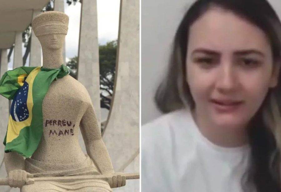 Em depoimento, a cabelereira confirmou que vandalizou a escultura com batom vermelho. Ela afirmou que agiu no “calor do momento” após um homem ter pedido a ela que terminasse de escrever a frase no monumento. Também disse que não sabia do valor simbólico e financeiro da estátua.