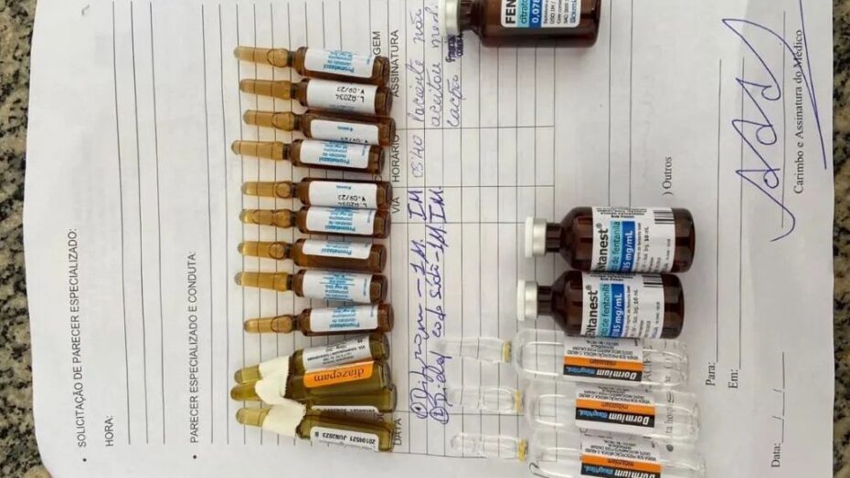 Foram furtados três frascos de Citrato de Fentamila 0,0785 mg/ml com 10ml, três de Midazolan 50mg/10ml, quatro de Diazepan 10mg/2ml e nove de Prometazina 50mg/2ml.
