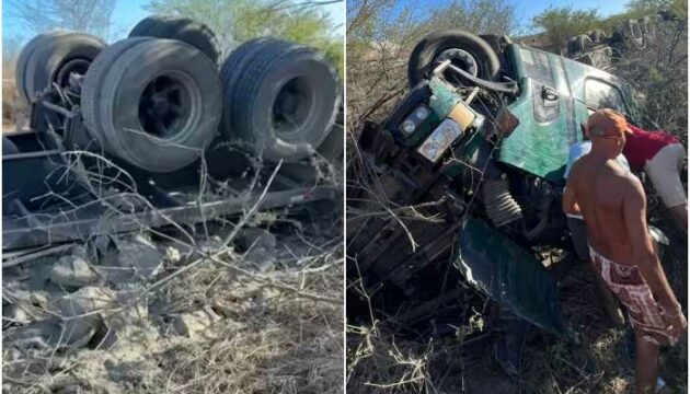 Motorista morre em acidente com caminhão carregado de cimento na BR-405, em Itaú/RN