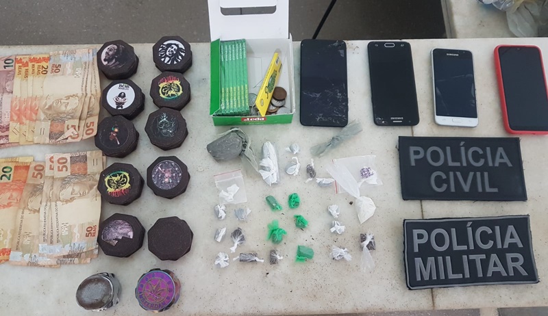 Durante as diligências, foram cumpridos mandados de busca e apreensão em desfavor dos suspeitos. Com eles, os policiais apreenderam várias porções de cocaína, maconha e LSD, além de outros objetos usados para o manuseio da droga.