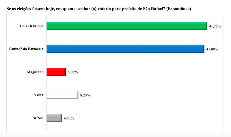 Já no quesito espontâneo, quando o entrevistador espera o eleitor diz o nome do seu candidato, os números trazem um empate técnico entre Canindé da Farmácia e Luiz Henrique. Seguem os números: